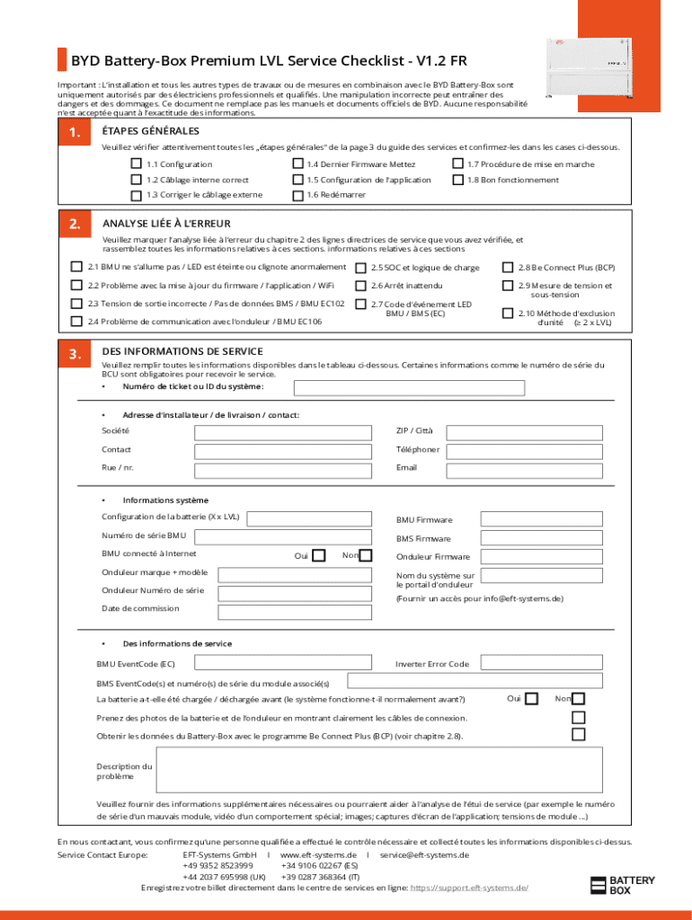 Obtenir le gratuit Byd Battery-box Premium Lvl Service Guideline and Checklist