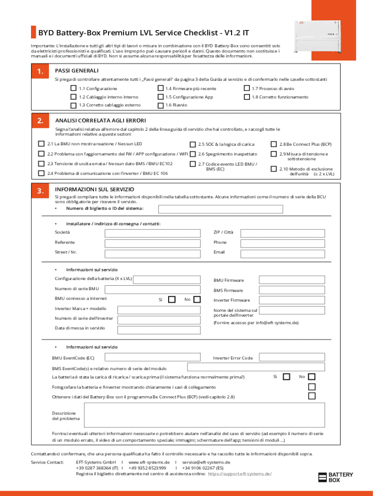 Ottieni il gratuito Byd Battery-box Premium Lvl Service Checklist