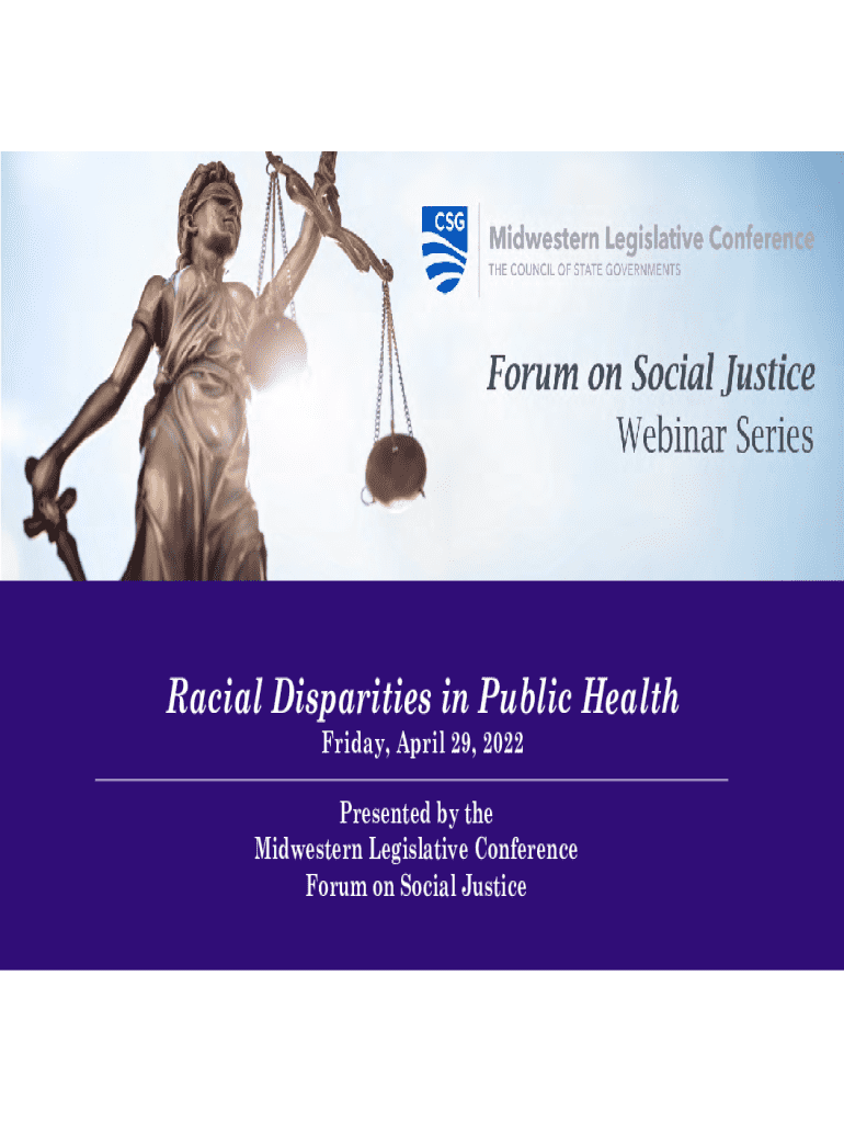 Racial Disparities in Public Health Friday, April 29, 2022Presented by the Midwestern Legislative Conference Forum on Social JusticeRACIAL DISPARITIES IN PUBLIC HEALTH OVERVIEWSamantha Artiga Director,