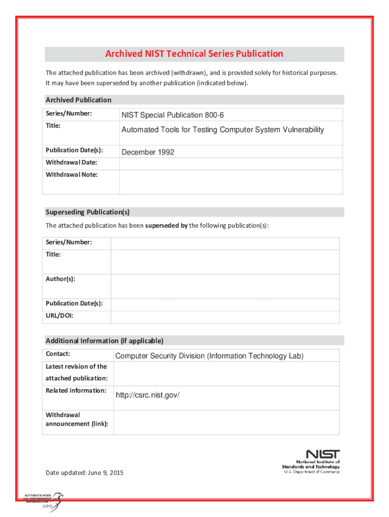 Fill out your nist special publication 800-6 online with pdfFiller!