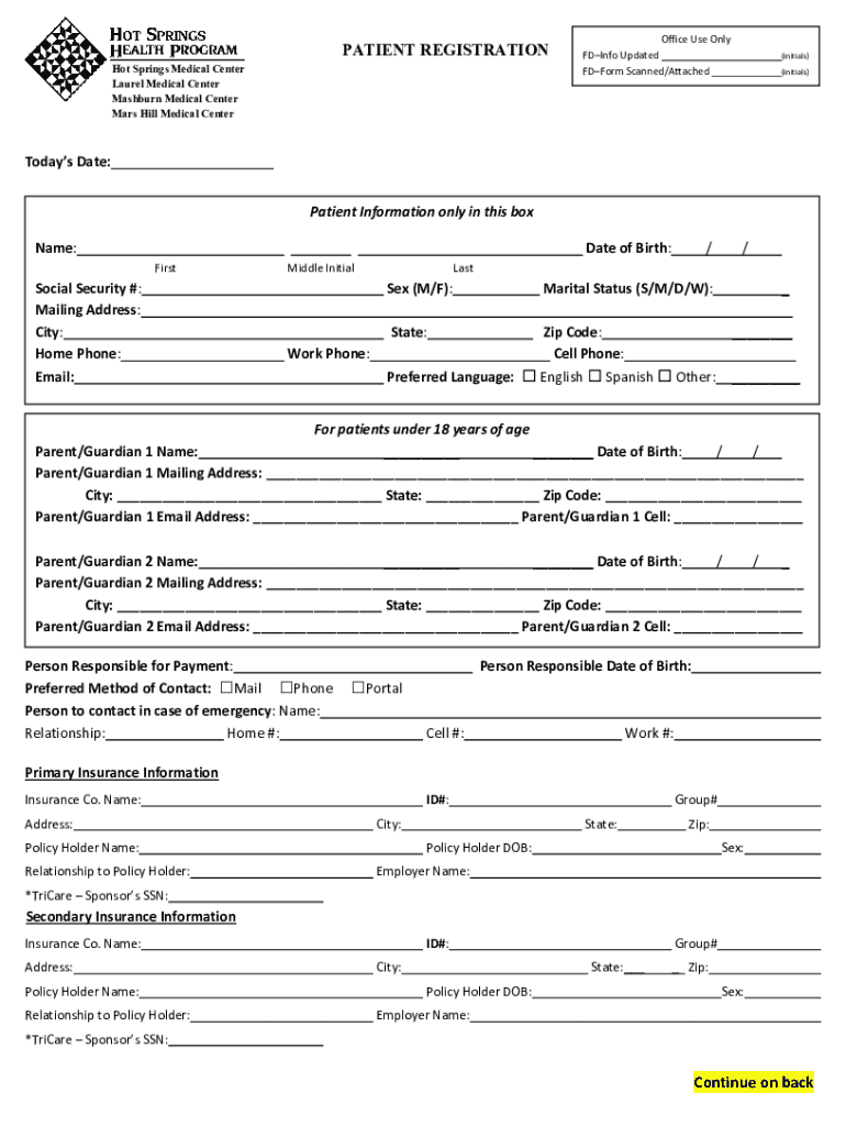 Get the free Patient Registration Form