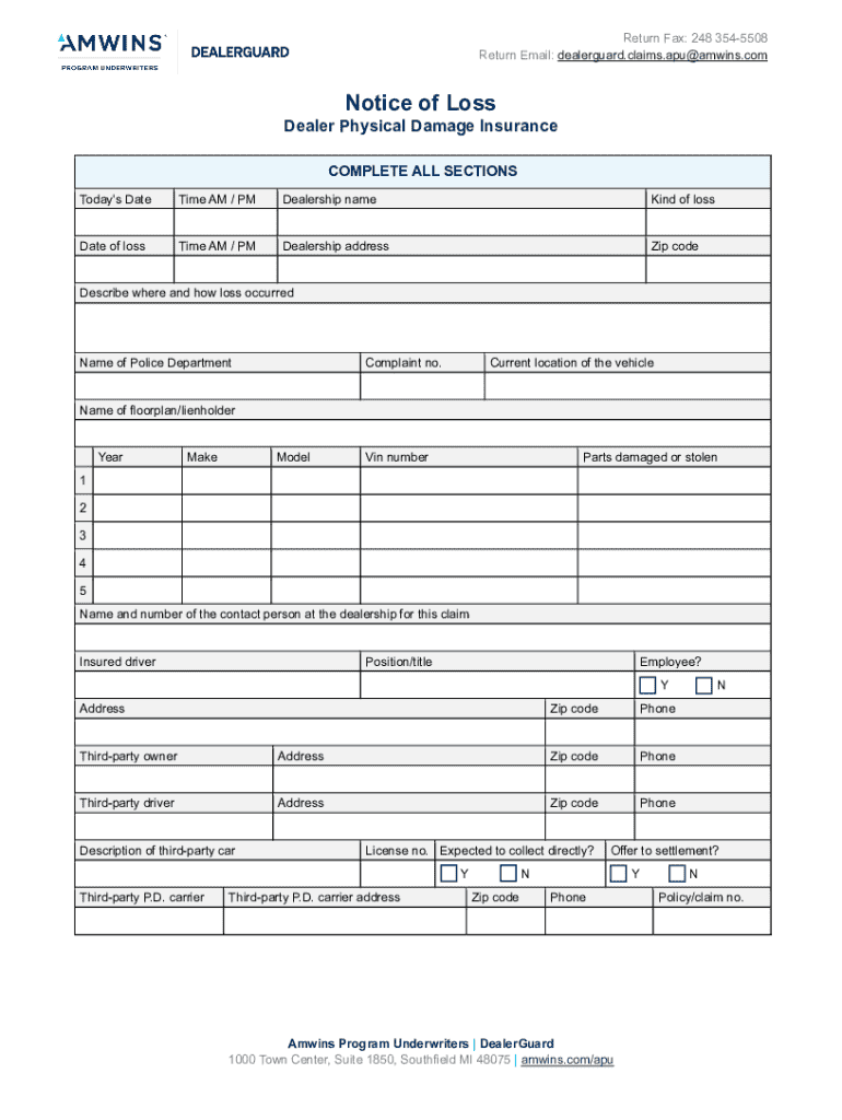 Get the free Notice of Loss