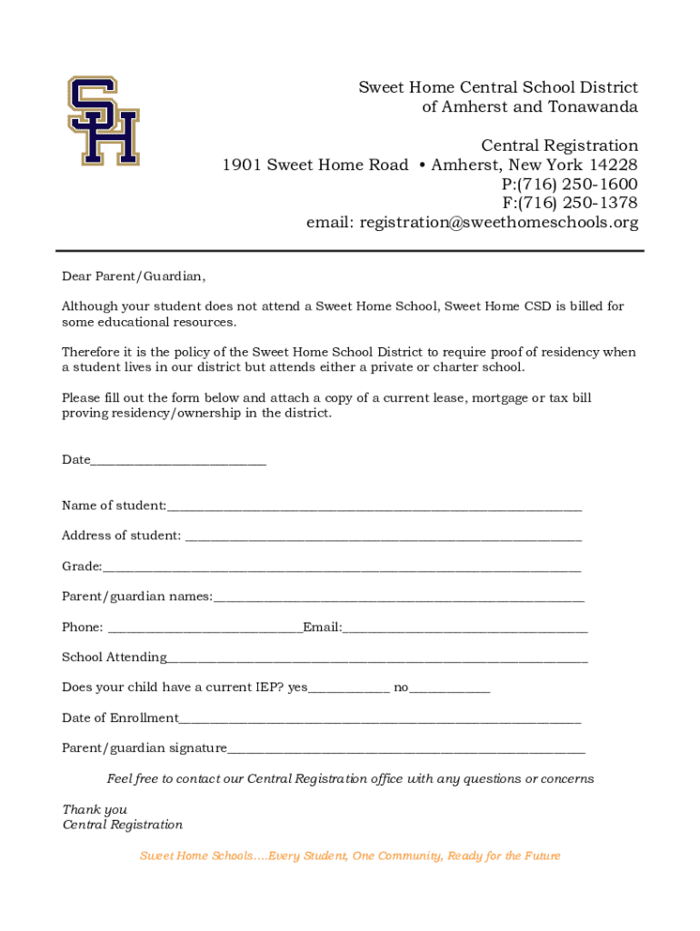 Sweet Home Central School District of Amherst and Tonawanda Central Registration 1901 Sweet Home Road Amherst, New York 14228 P:(716) 2501600 F:(716) 2501378 email: registration@sweethomeschools.org