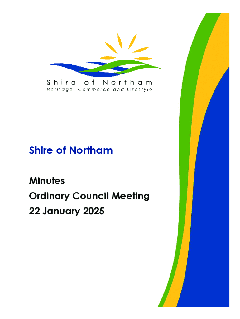 Minutes of the Shire of Northam Ordinary Council Meeting held on 22 January 2025, covering various agendas including disclosures, attendance, officer reports, applications for leave, and financial