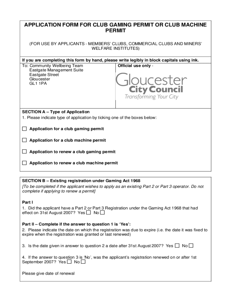 Get the free Application Form for Club Gaming Permit or Club Machine Permit
