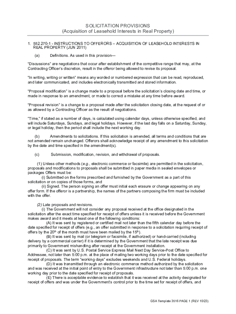 SOLICITATION PROVISIONS (Acquisition of Leasehold Interests in Real Property) 1. 552.2701 INSTRUCTIONS TO OFFERORS ACQUISITION OF LEASEHOLD INTERESTS IN REAL PROPERTY (JUN 2011) (a)Definitions. As