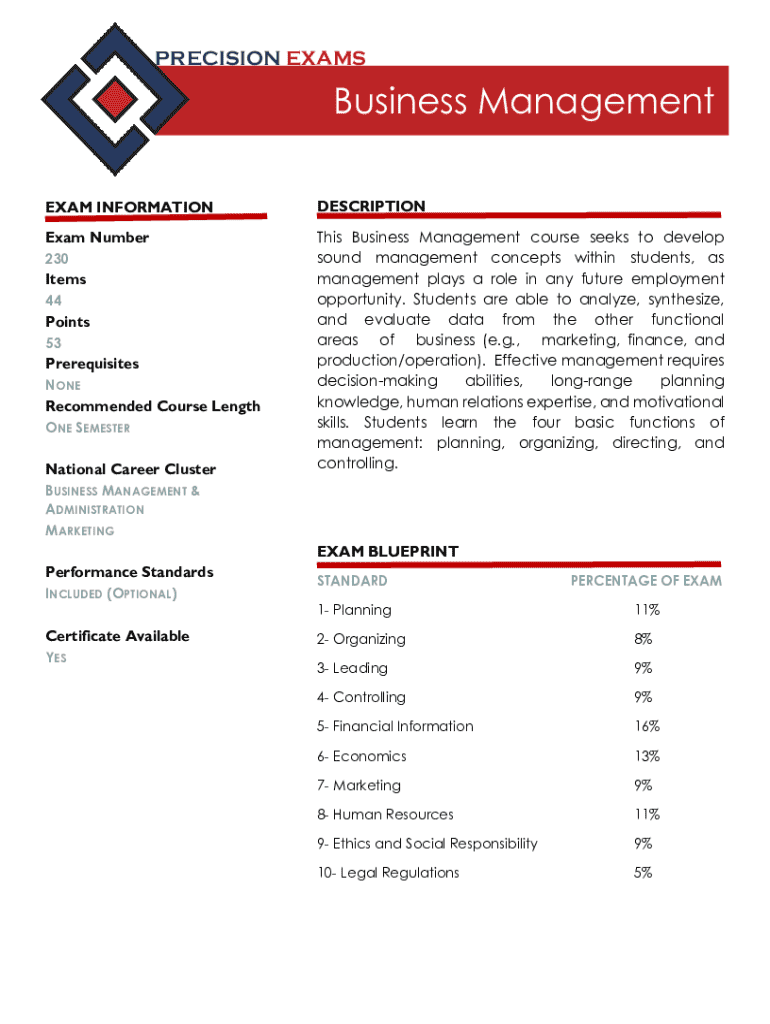 The business management exam is an assessment designed to evaluate an individual's knowledge and understanding of business management principles, practices, and theories.