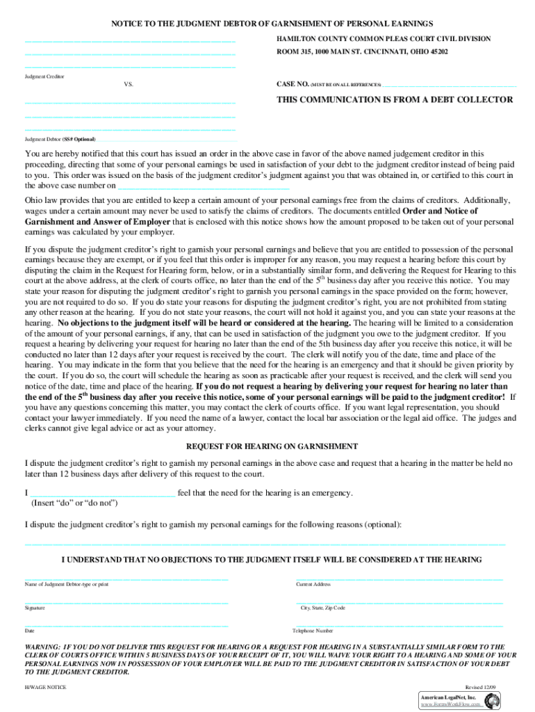Get the free Notice to the Judgment Debtor of Garnishment of Personal Earnings