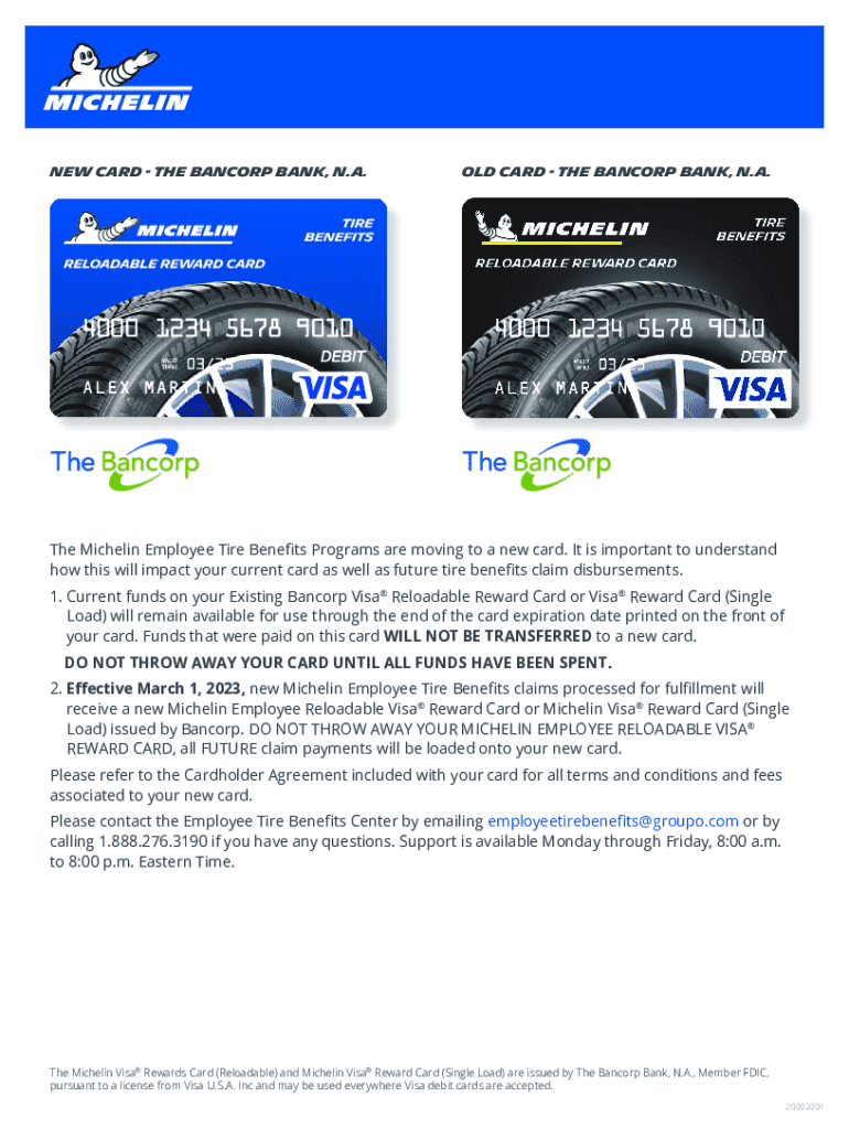 New Card the Bancorp bank, n.a.OLD Card the Bancorp bank, n.a.The Michelin Employee Tire Benefits Programs are moving to a new card. It is important to understand how this will impact your current