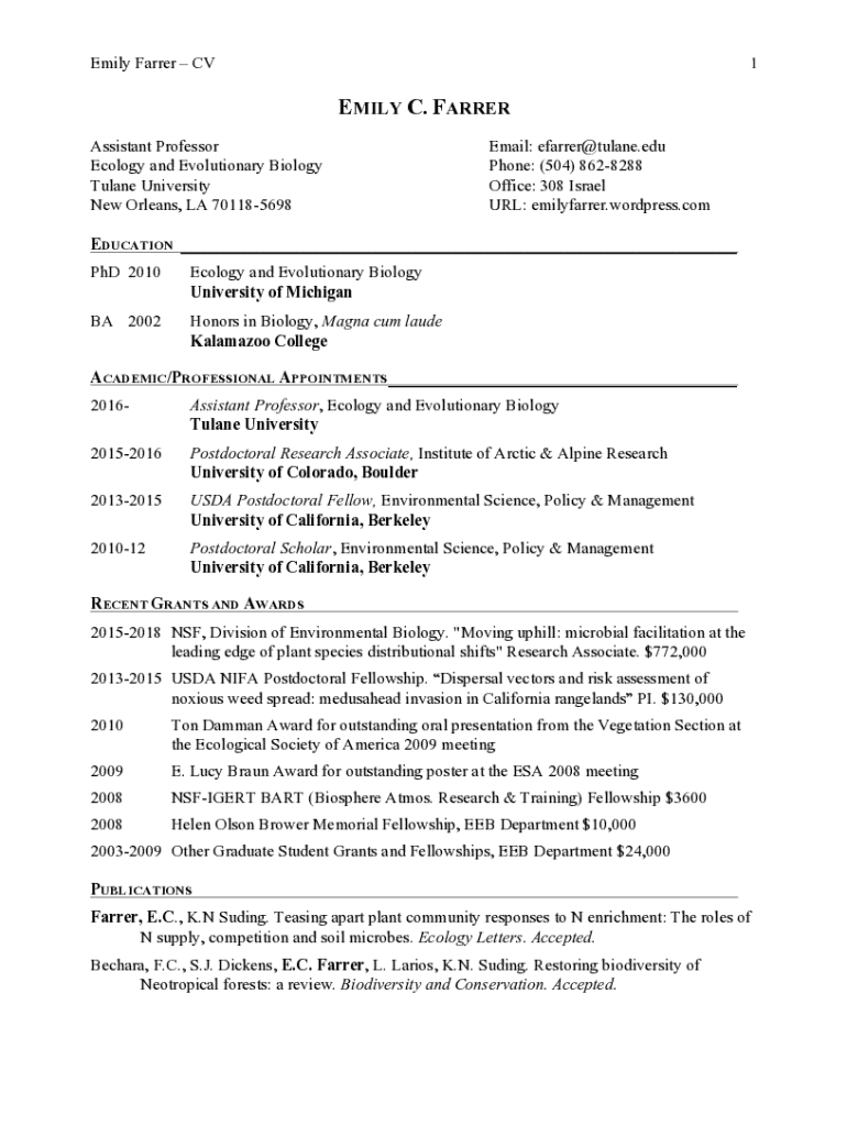 Emily Farrer CV1EMILY C. FARRER Assistant Professor Ecology and Evolutionary Biology Tulane University New Orleans, LA 701185698Email: efarrer@tulane.edu Phone: (504) 8628288 Office: 308 Israel URL: