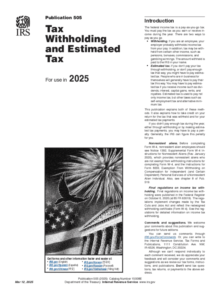 IRS Publication 505 Form Versions
