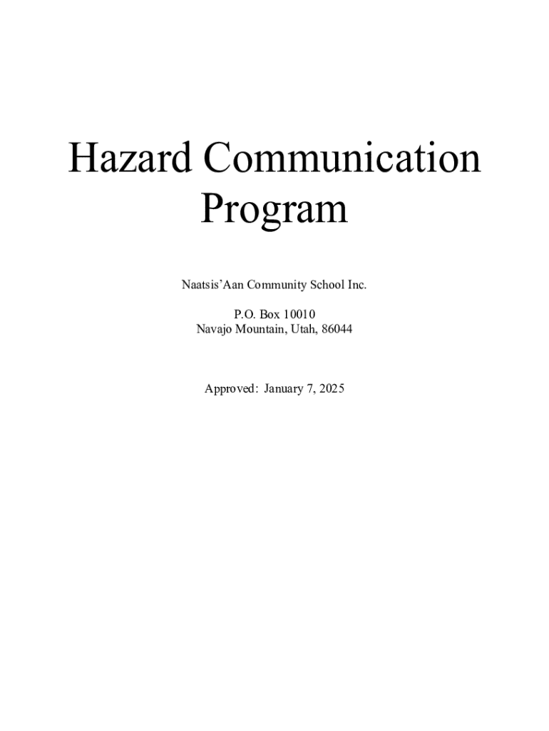 Hazard Communication Program NaatsisAan Community School Inc. P.O. Box 10010 Navajo Mountain, Utah, 86044Approved: January 7, 2025TABLE OF CONTENTS Page INTRODUCTION ..........................................................................................................................