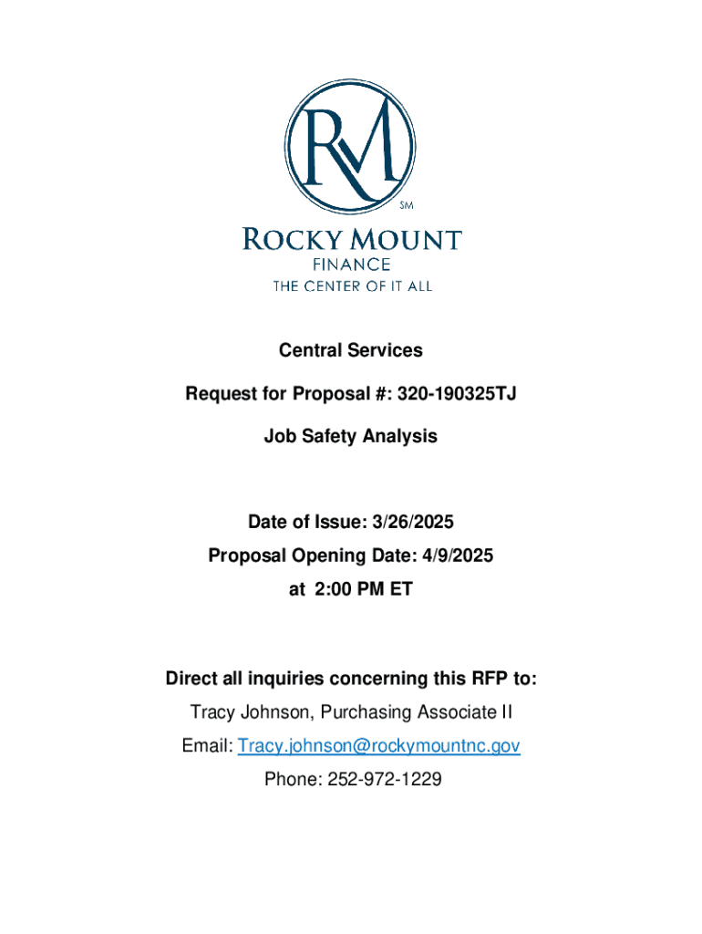 The City of Rocky Mount is seeking qualified consultants to conduct a comprehensive Job Safety Analysis (JSA) to evaluate potential hazards associated with specific tasks or job functions, and to