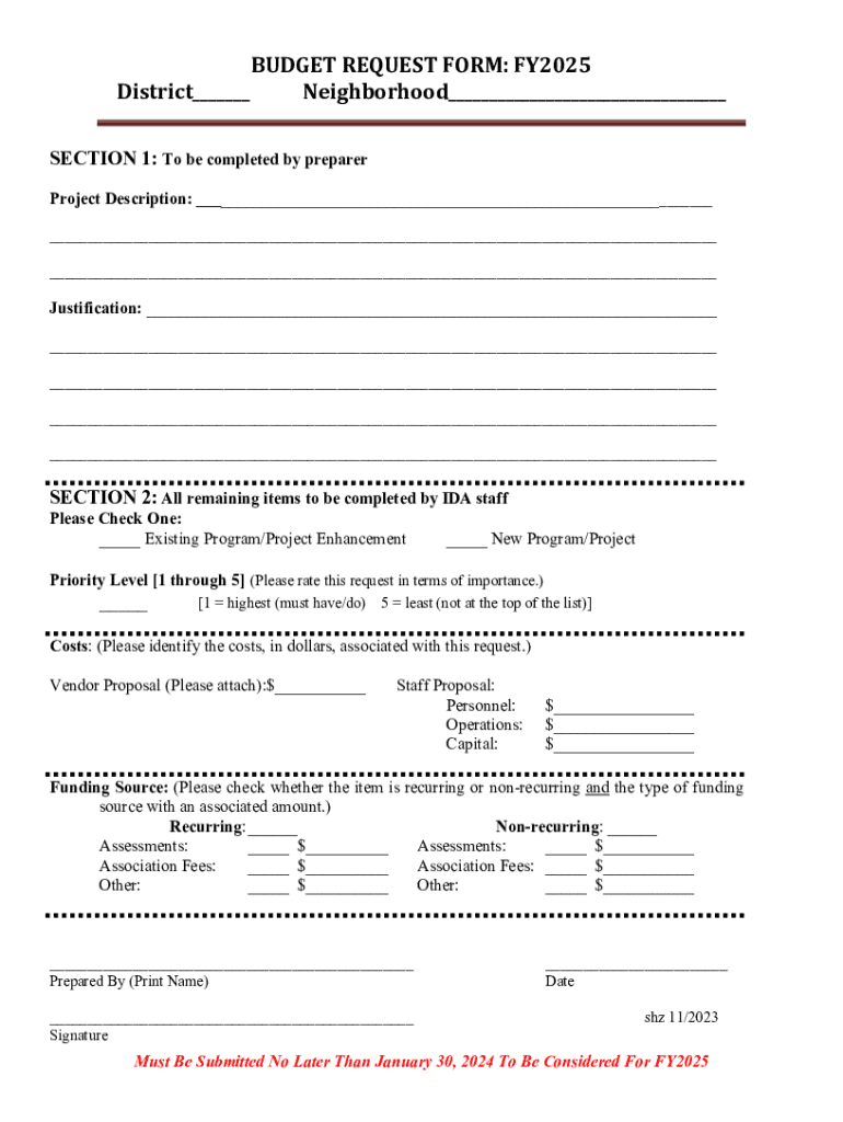 The budget request form FY2025 is a document used by organizations to formally request funding for various programs, projects, or operational needs for the fiscal year 2025.