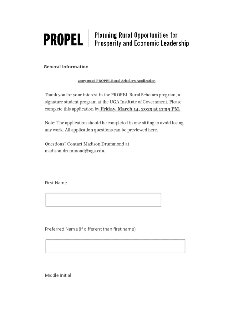 Get the free 2025-2026 Propel Rural Scholars Application - cviog uga