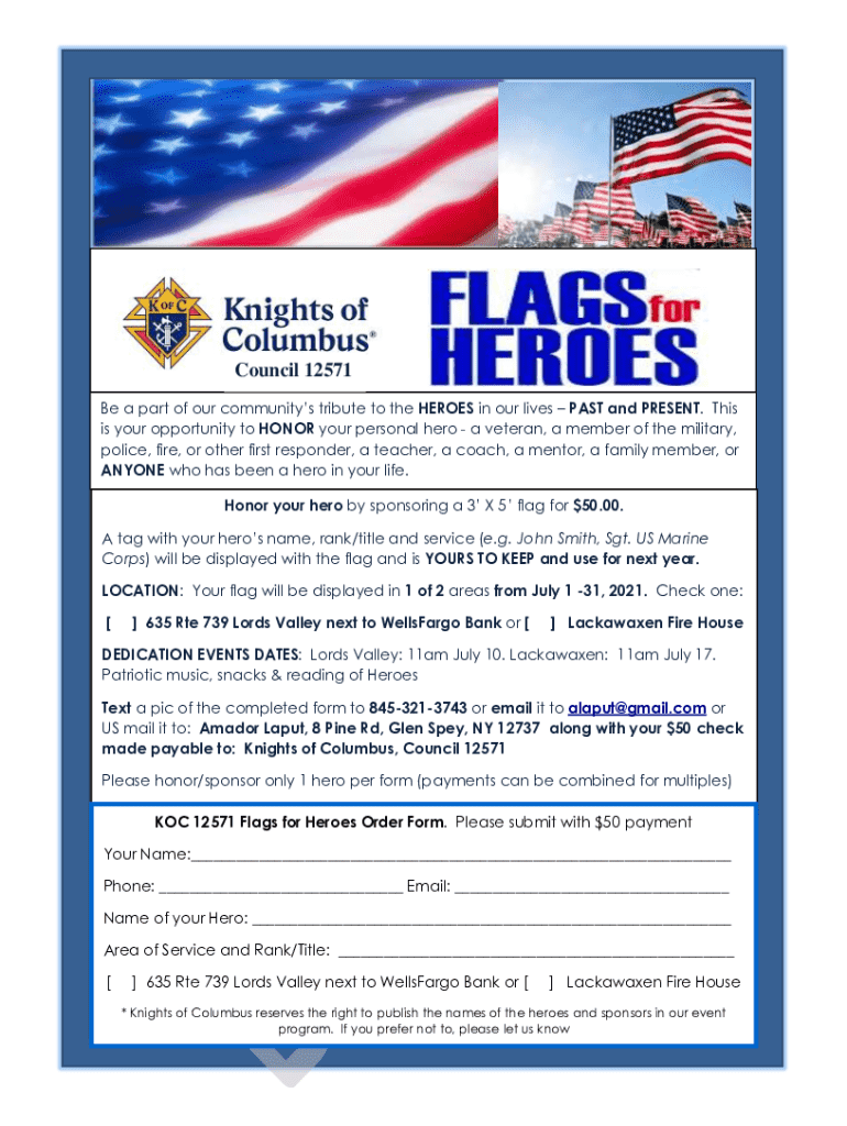 Get the free Koc 12571 Flags for Heroes Order Form