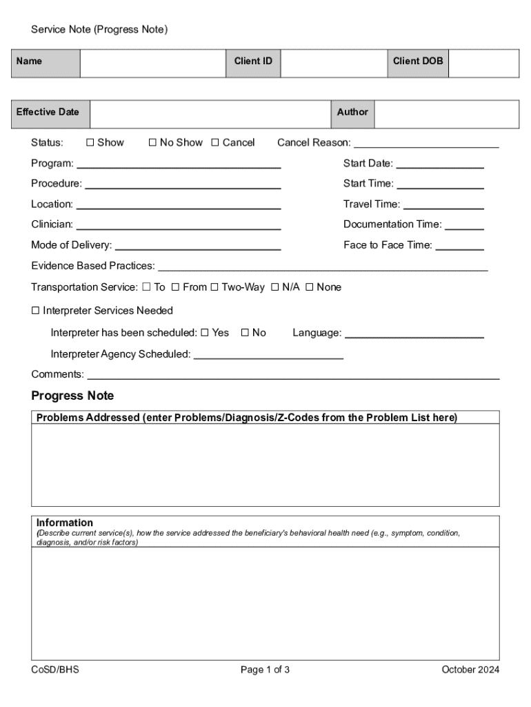 Get the free Service Note (progress Note)