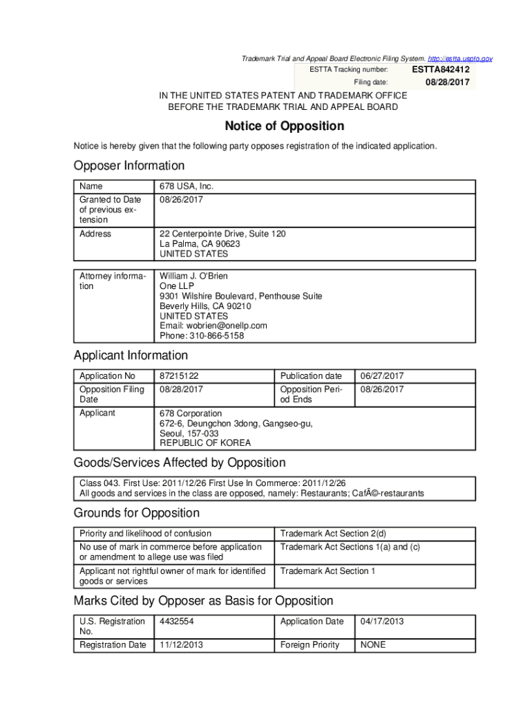 Get the free Notice of Opposition
