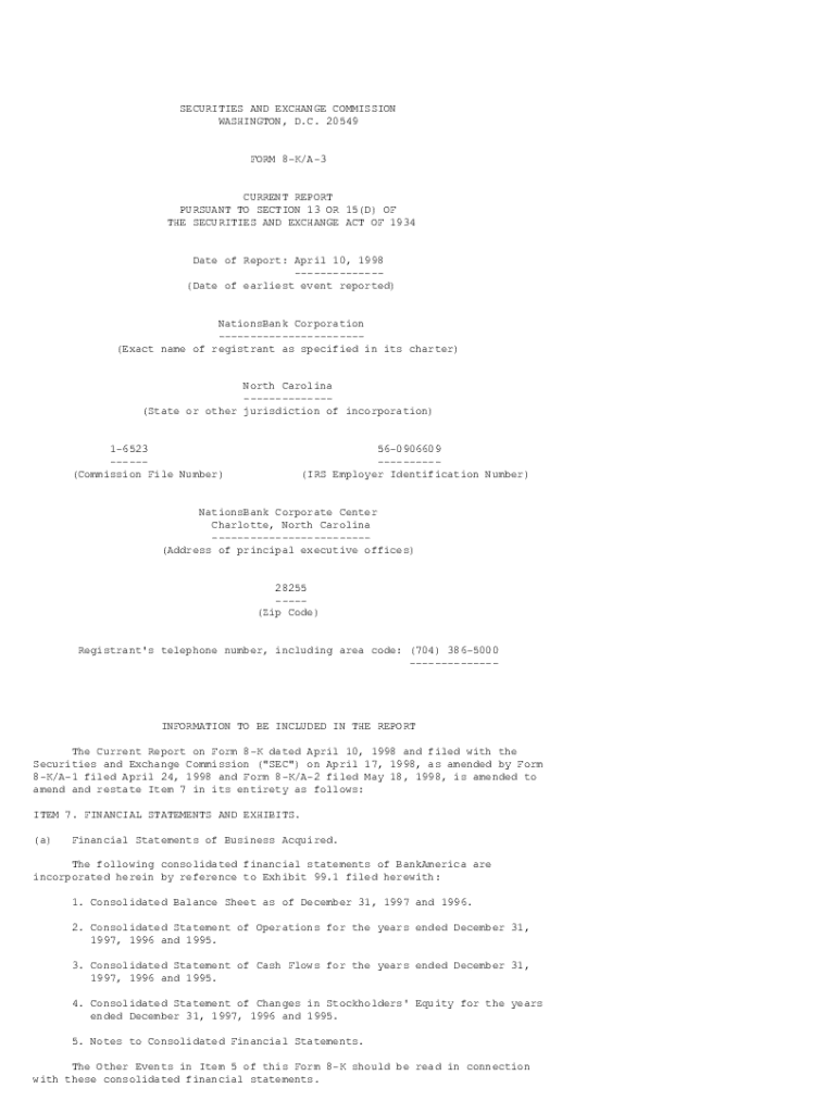 This document provides an amended current report by NationsBank Corporation regarding financial statements and exhibits, including pro forma financial information, related to the reorganization and