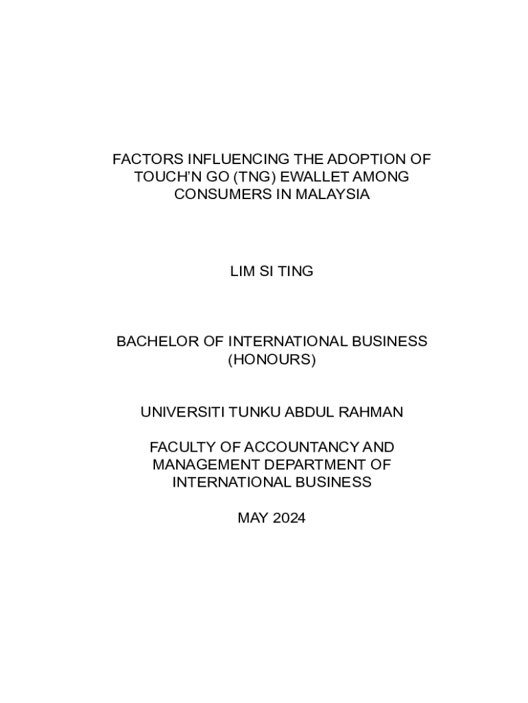 Get the free Factors Influencing the Adoption of Touch’n Go (tng) Ewallet Among Consumers in Mala...