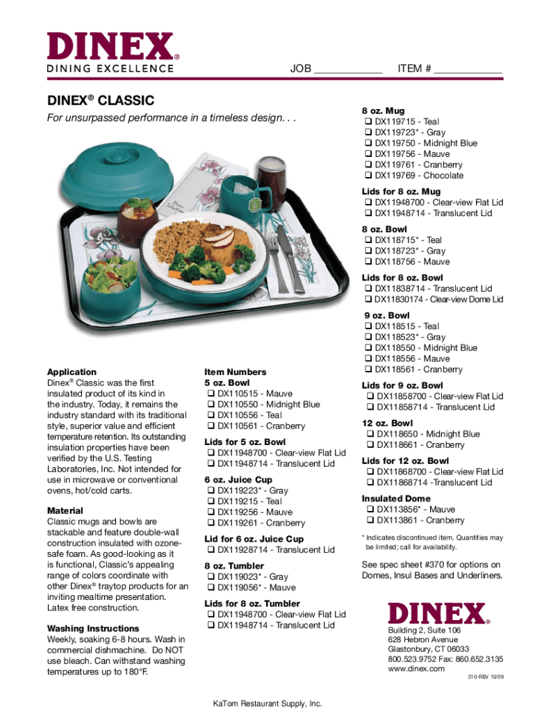 JOB ___DINEX CLASSIC For unsurpassed performance in a timeless design. . .ITEM # ___8 oz. Mug q DX119715 Teal q DX119723* Gray q DX119750 Midnight Blue q DX119756 Mauve q DX119761 Cranberry q DX119769