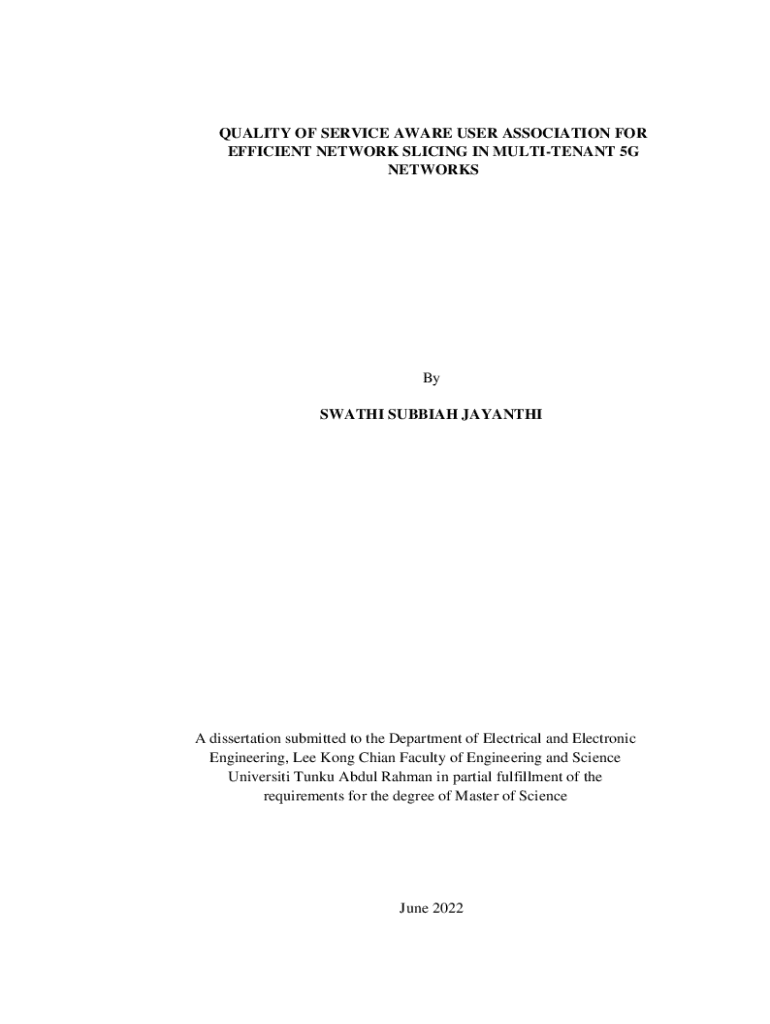 QUALITY OF SERVICE AWARE USER ASSOCIATION FOR EFFICIENT NETWORK SLICING IN MULTITENANT 5G NETWORKSBy SWATHI SUBBIAH JAYANTHIA dissertation submitted to the Department of Electrical and Electronic