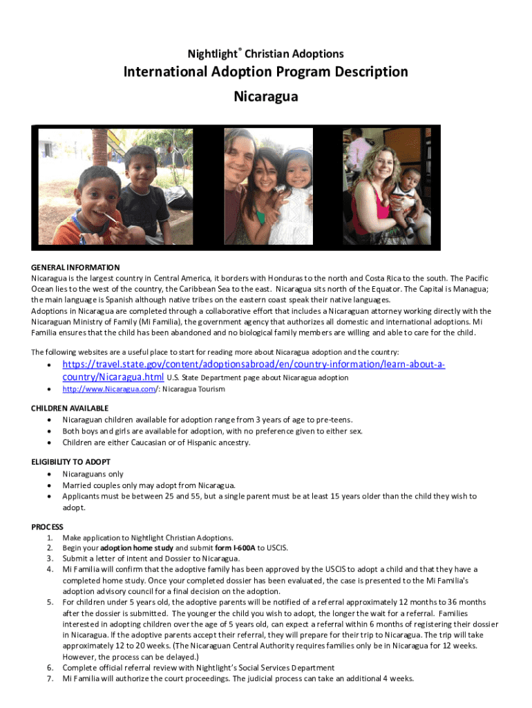 Get the free Nightlight Christian Adoptions - Nicaragua International Adoption