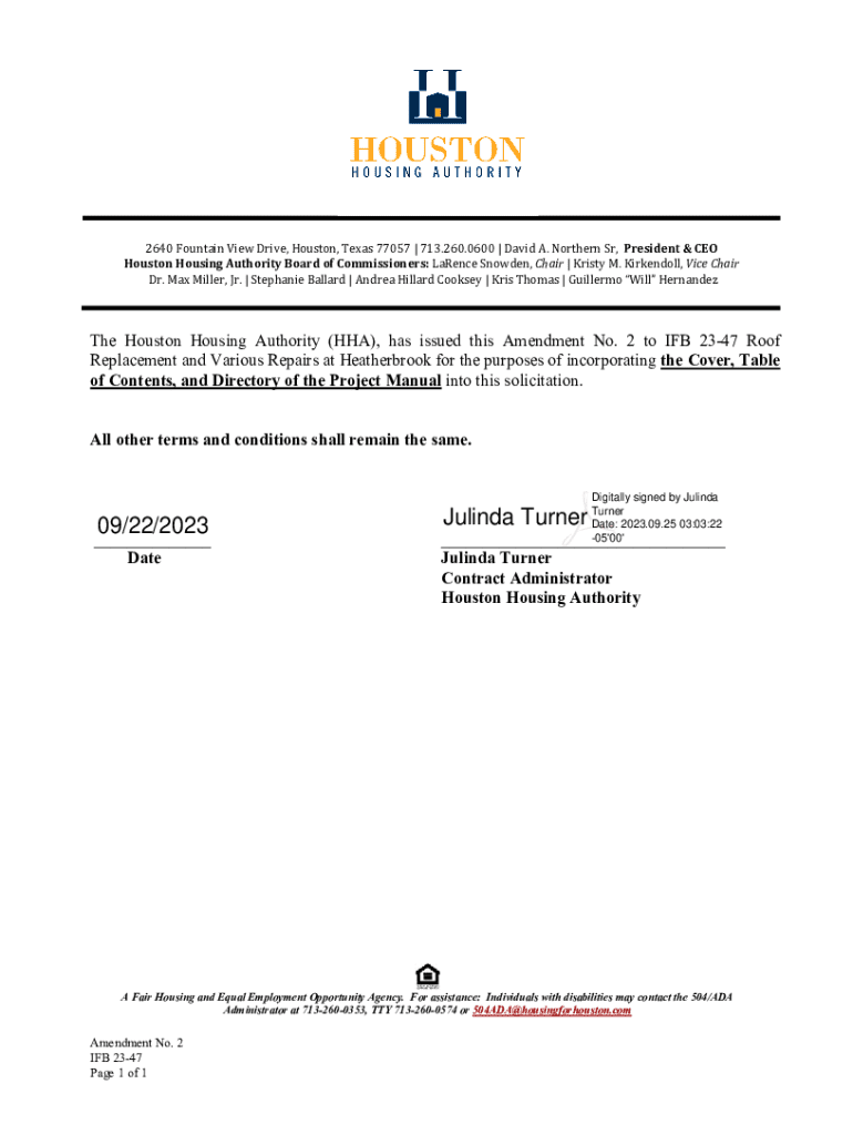 2640 Fountain View Drive, Houston, Texas 77057 | 713.260.0600 | David A. Northern Sr, President & CEO Houston Housing Authority Board of Commissioners: LaRence Snowden, Chair | Kristy M. Kirkendoll,