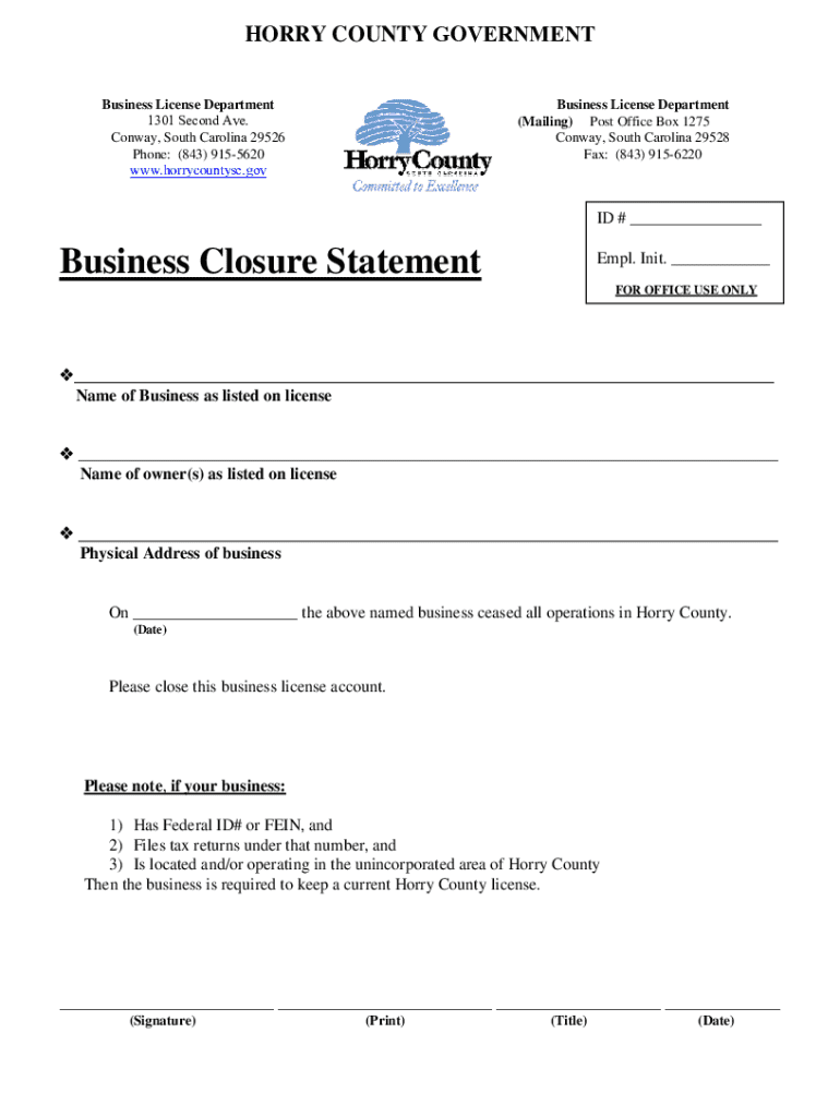 Get the free Business Closure Statement