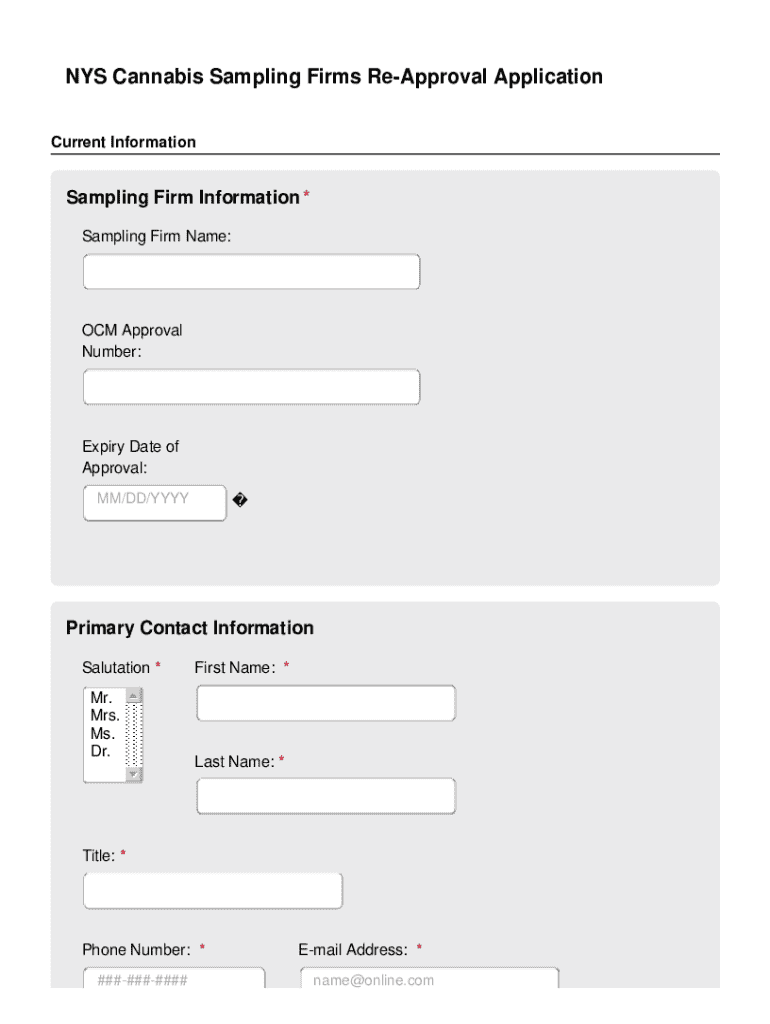 Get the free Nys Cannabis Sampling Firms Re-approval Application