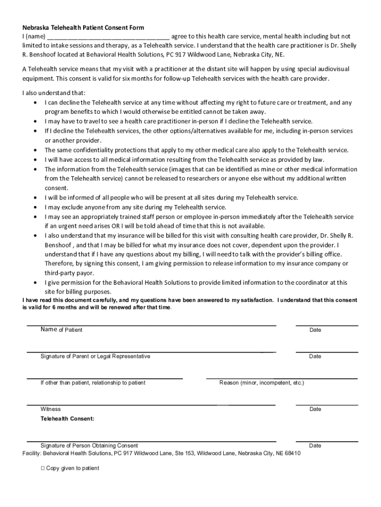 Get, Create, Make and Sign nebraska telehealth patient consent