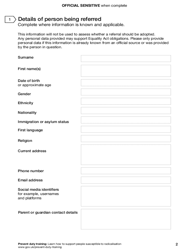 Obtain the National Prevent Referral Form from your local authority or official website.