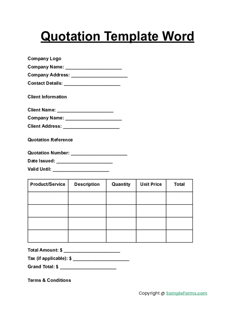 Include terms and conditions related to the quotation, such as validity period or payment terms.