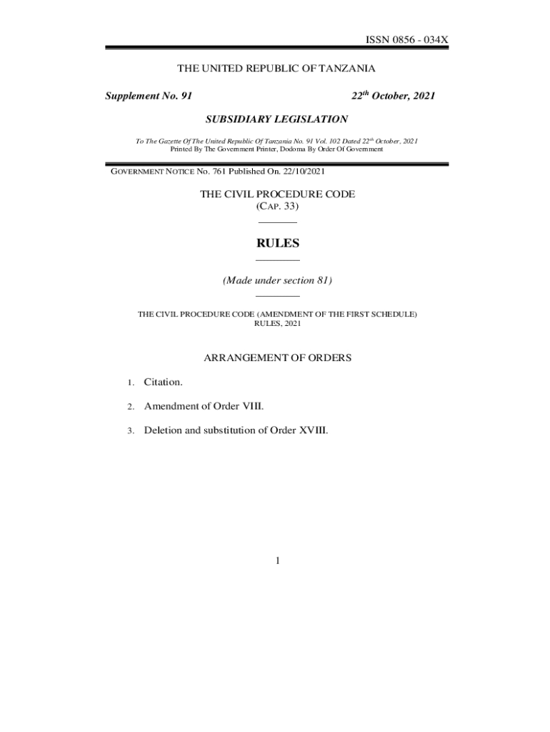 Get the free Civil Procedure Code (amendment of the First Schedule)
