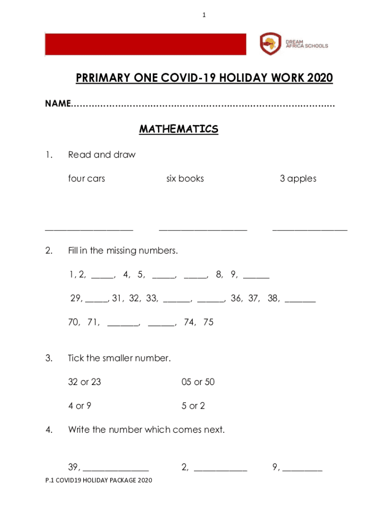 Get the free Prrimary One Covid-19 Holiday Work 2020