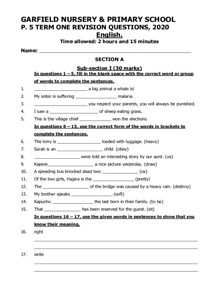 Get the free P. 5 Term One Revision Questions, 2020