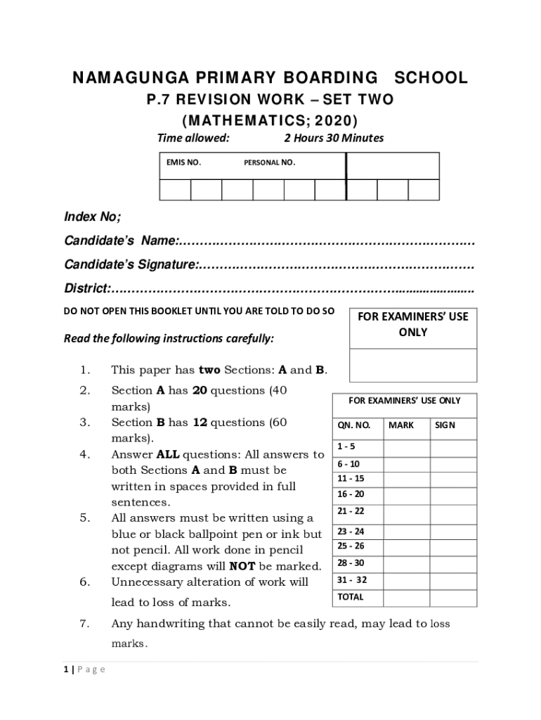 Get the free P.7 Revision Work – Set Two