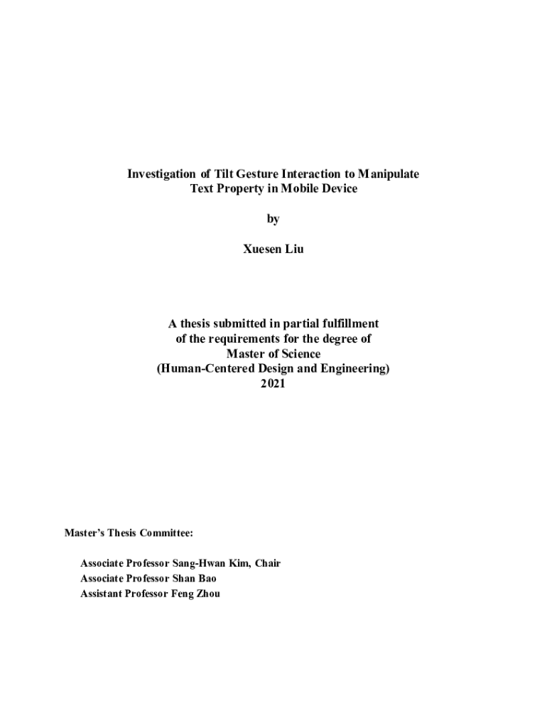 Investigation of Tilt Gesture Interaction to Manipulate Text Property in Mobile Device by Xuesen LiuA thesis submitted in partial fulfillment of the requirements for the degree of Master of Science