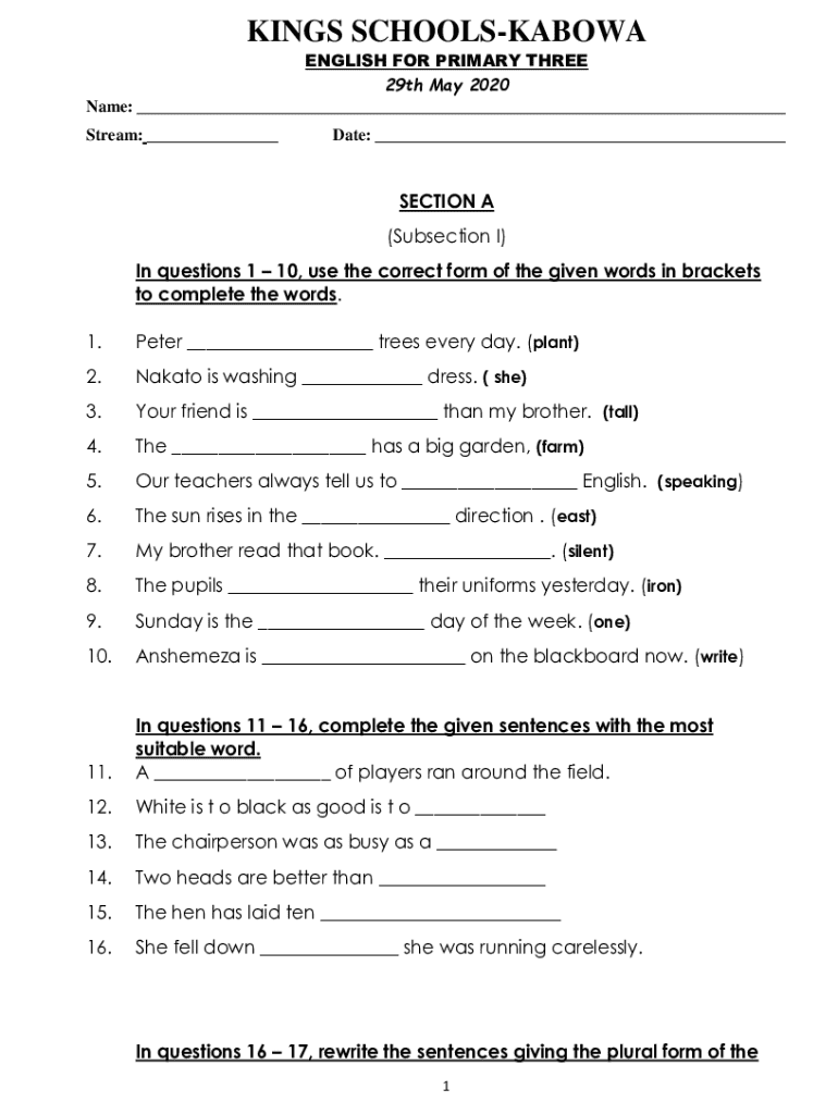 Edit your english for primary three form online