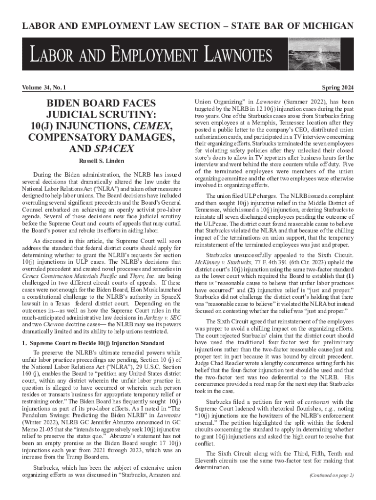 Get the free Labor and Employment Lawnotes