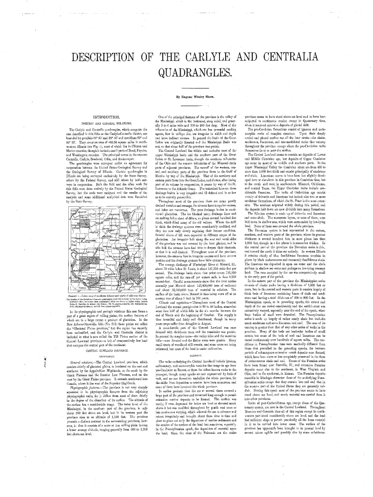 QUADRANGLES. By Eugene Wesley Shaw.INTRODUCTION. POSITION AND GENERAL RELATIONS.The Carlyle and Centralia quadrangles, which comprise the area described in this folio as the CarlyleCentralia district,