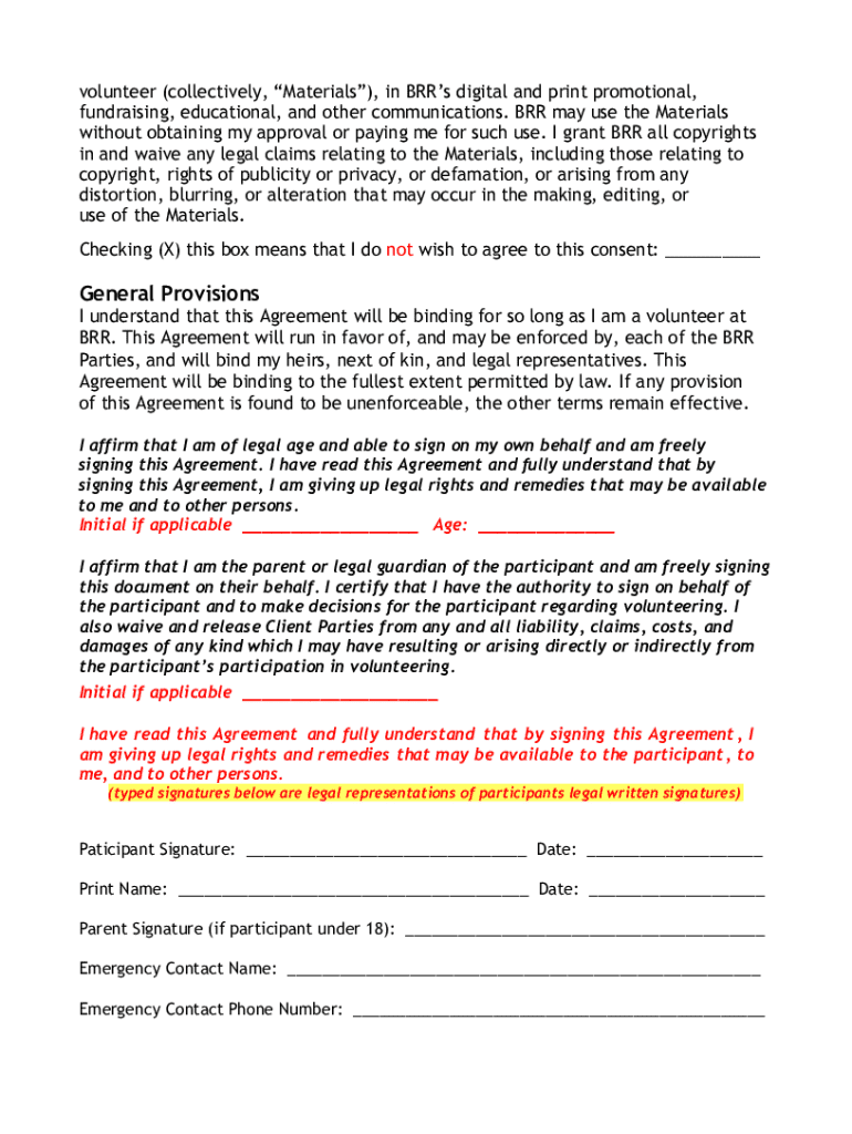 Get the free Volunteer Liability Waiver and Agreement