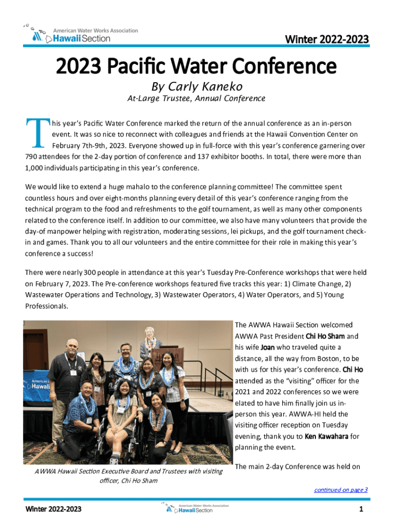 Winter 202220232023 Pacific Water Conference By Carly KanekoAtLarge Trustee, Annual ConferenceThis years Pacific Water Conference marked the return of the annual conference as an inperson event. It