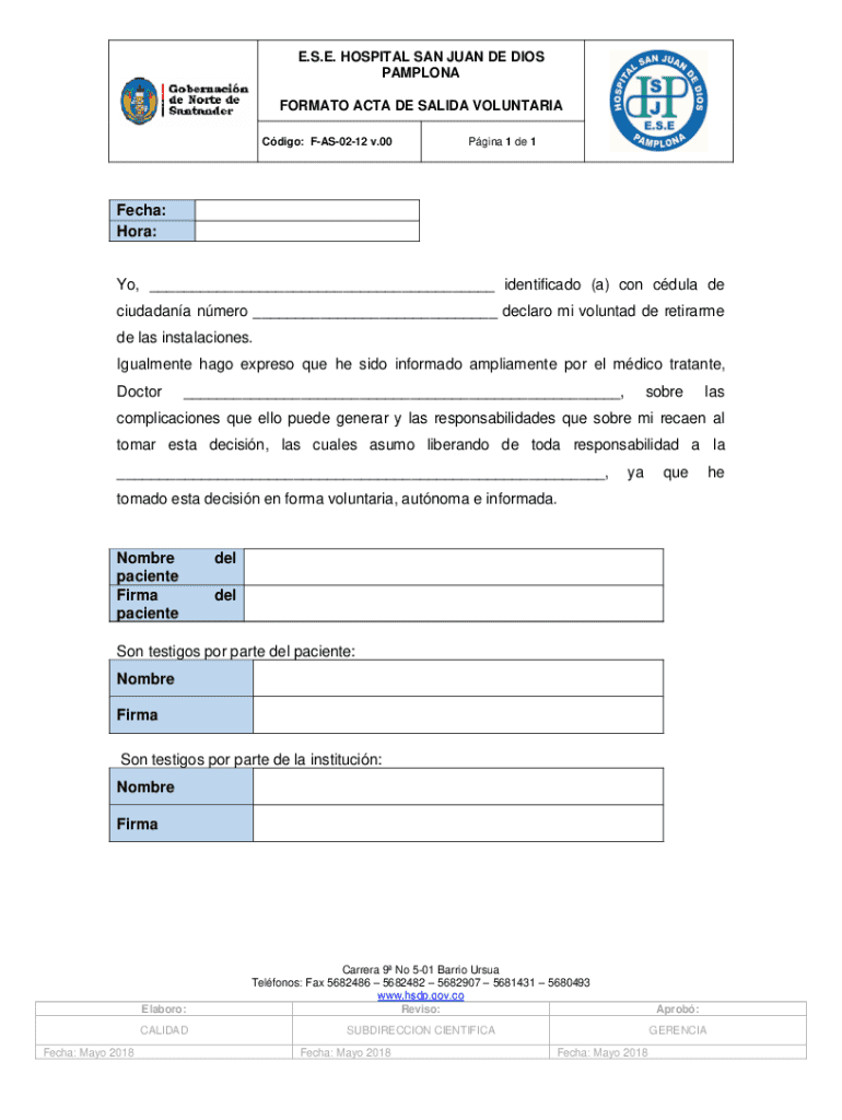 Documento que permite al paciente declarar su voluntad de retirarse del hospital, reconociendo las responsabilidades y posibles complicaciones de esta decisión.