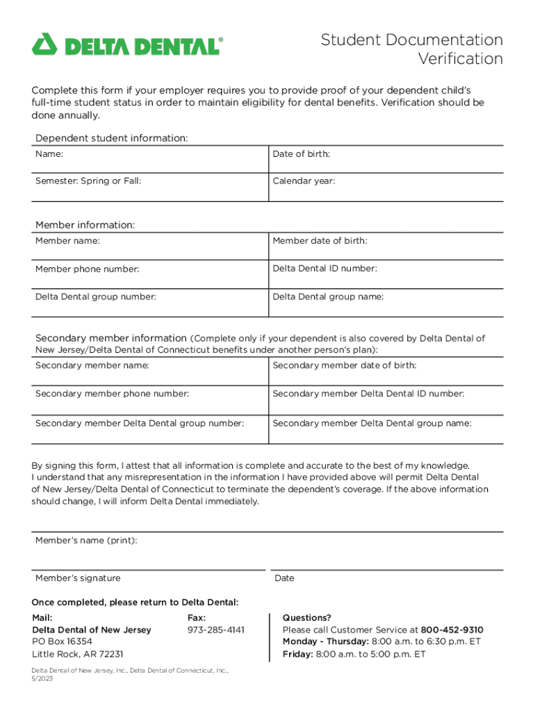 Complete this form to provide proof of your dependent child’s full-time student status to maintain eligibility for dental benefits. Verification is required annually.