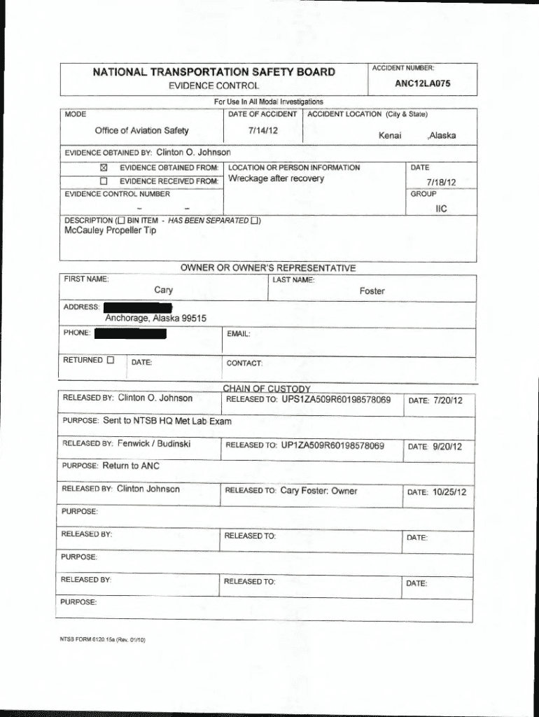 How to fill out ntsb accident evidence control