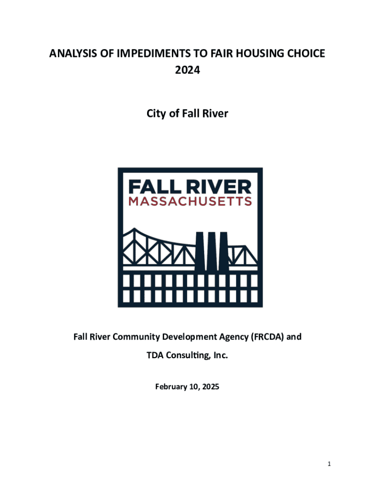 This document provides an overview of the impediments to fair housing choice in Fall River, outlining the analysis, community participation, fair housing laws, demographic trends, housing conditions,