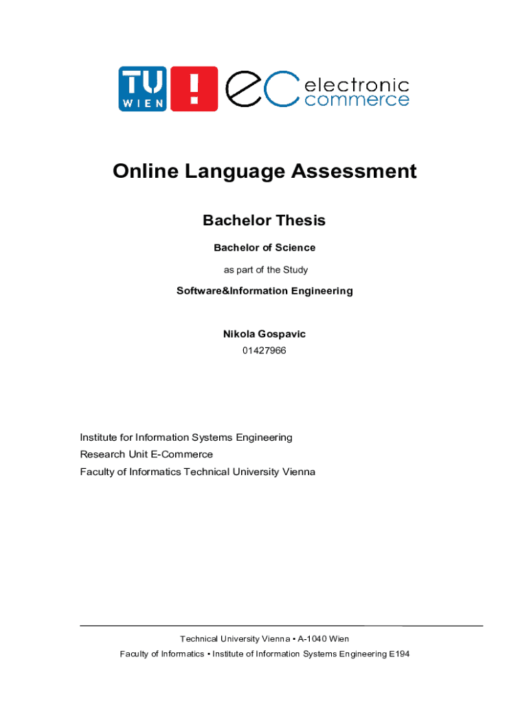 This thesis presents the development of an online tool for assessing language skills in a university setting, particularly aimed at facilitating quick and accurate evaluations of student language