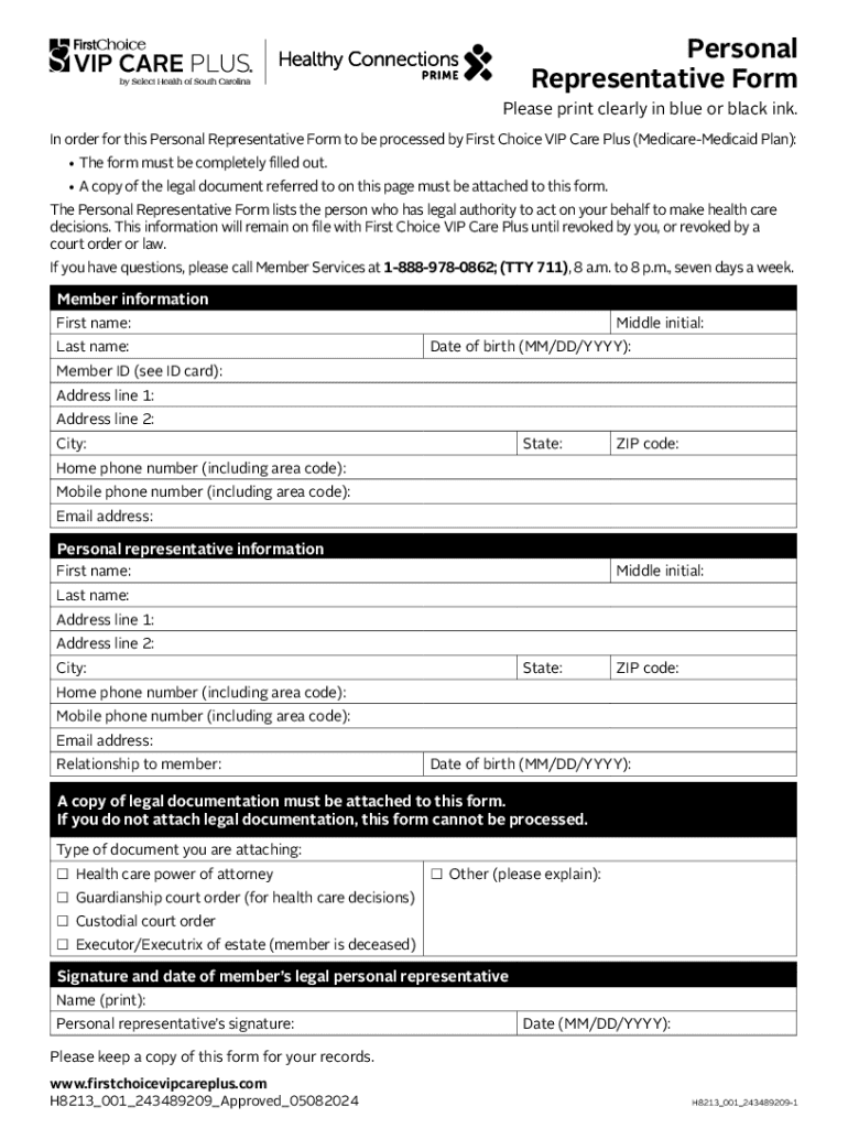 Email, fax, or share your personal representative form form via URL. You can also download, print, or export forms to your preferred cloud storage service.