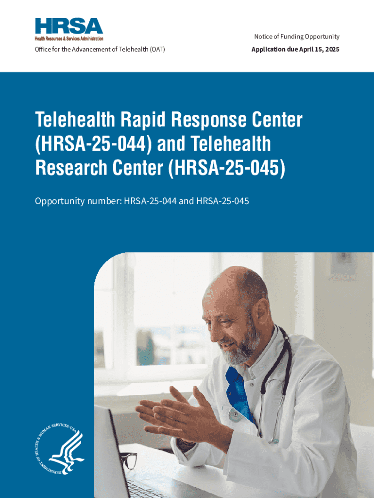 This notice announces funding opportunities from the Health Resources and Services Administration (HRSA) for the Telehealth Rapid Response Center and the Telehealth Research Center, aimed at expanding